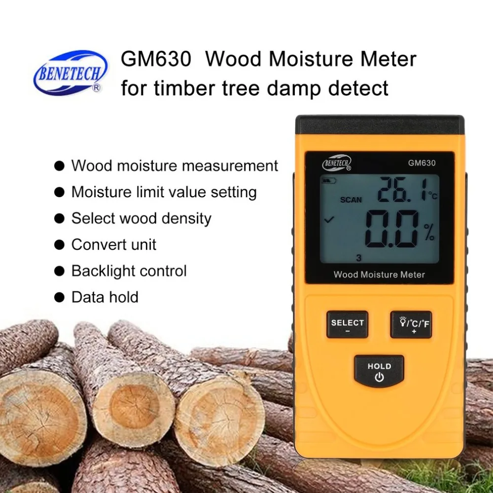 GM630 Digital LCD Display Wood Moisture Meter Humidity Test Timber Paper Tree Damp Detector Density