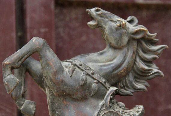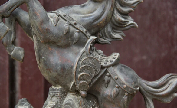 JP S0524 13" Chinese Bronze Wealth Money Great Wall Zodiac Year Horse Statue sculpture B0403