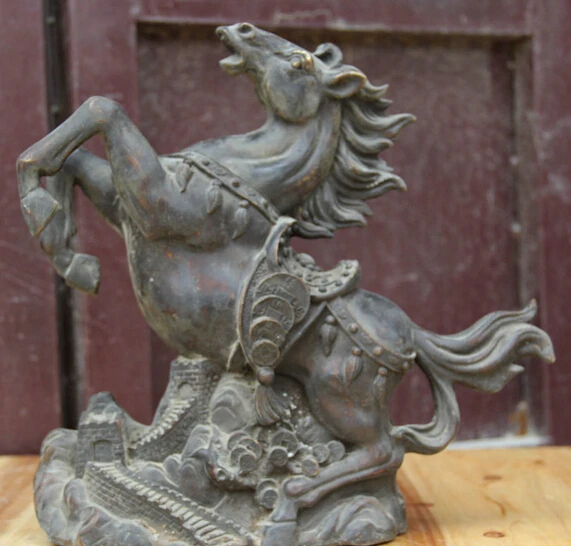 HIGH QUALITY JP S0524 13" Chinese Bronze Wealth Money Great Wall Zodiac Year Horse Statue sculpture B0403