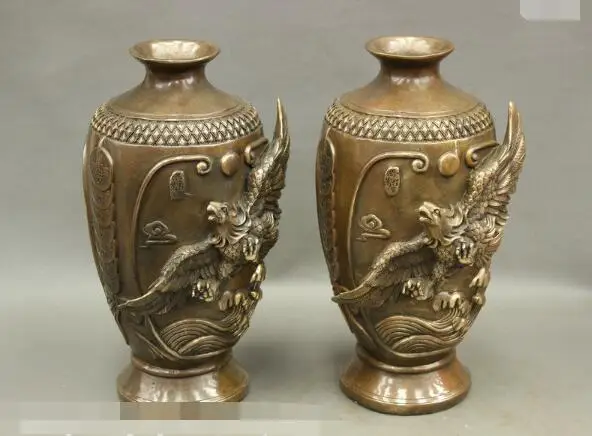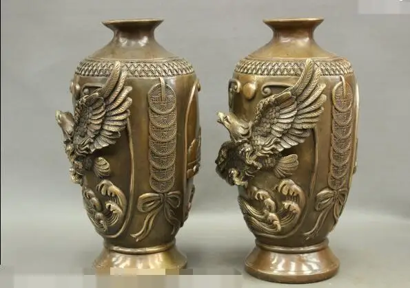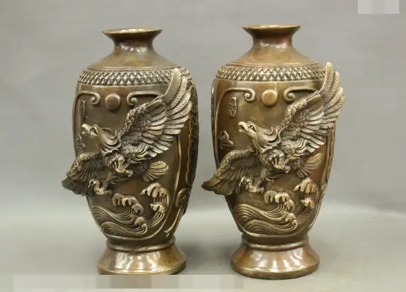REVIEW TOP SELLER S6500 14 Chinese Bronze Copper Eagle Hawk Roc Fly Past Great Wall Statue Vase Pot Pair D0318